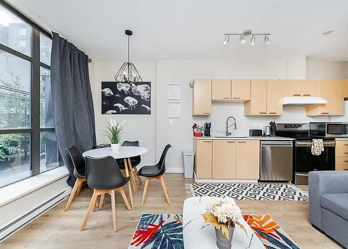 Nestled in the vibrant heart of Downtown Vancouver, the Gorgeous Unit In The Heart Of Downtown Apartment stands as a beacon of modern comfort and urban elegance. This premier accommodation seamlessly combines convenience and style, making it an ideal sanctuary for both business and leisure travelers. Guests are greeted with a delightful free to-go breakfast each morning, setting the perfect tone for a day of exploration or meetings in the nearby financial district.